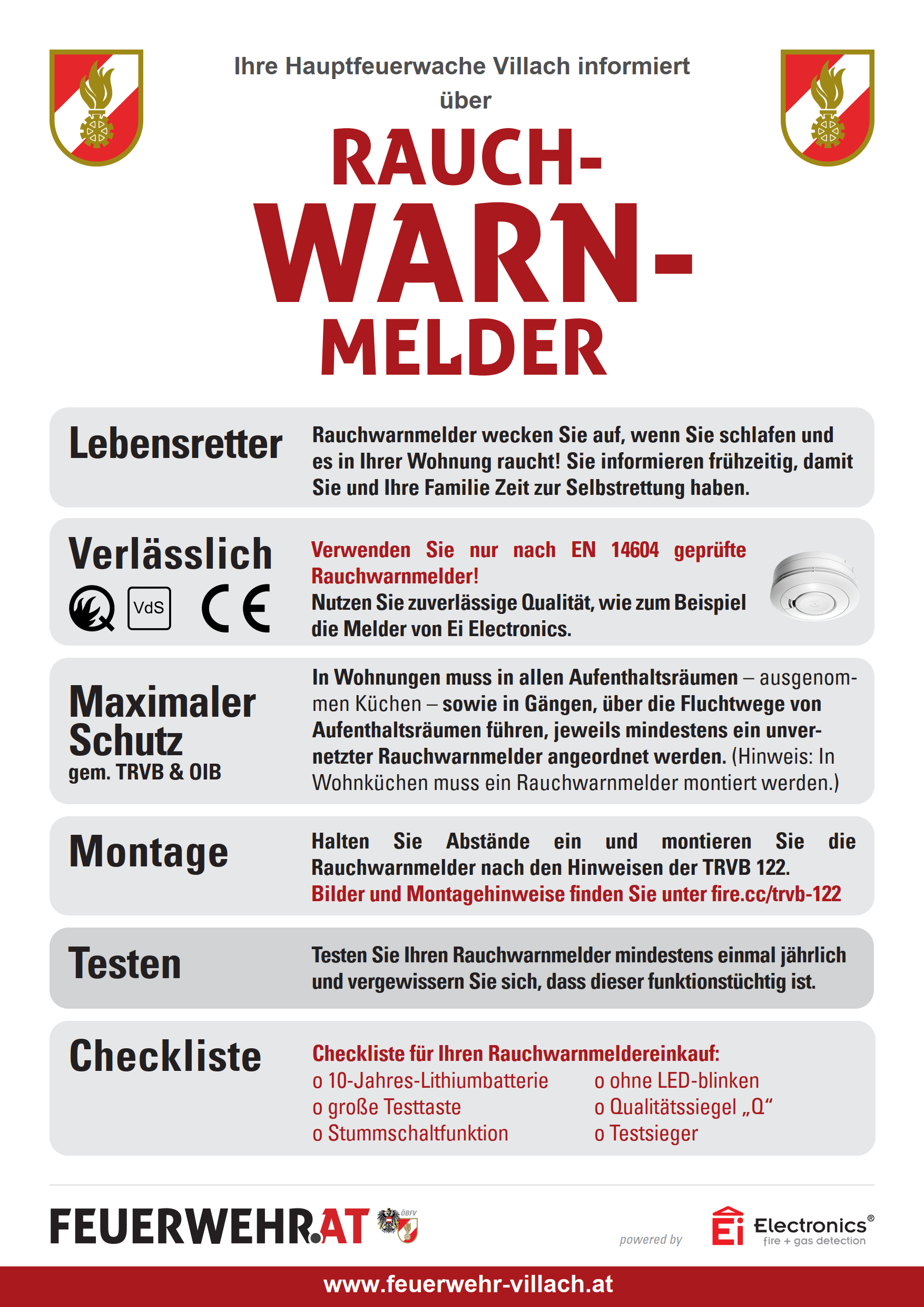 Rauchmelder – auch Home-Melder genannt – sind in Kärnten seit dem Jahr 2013 in Wohnräumen gesetzlich vorgeschrieben! Sie erkennen Brandrauch frühzeitig und warnen mit einem lauten Signal – oft entscheidend für die Rettung von Menschenleben.
