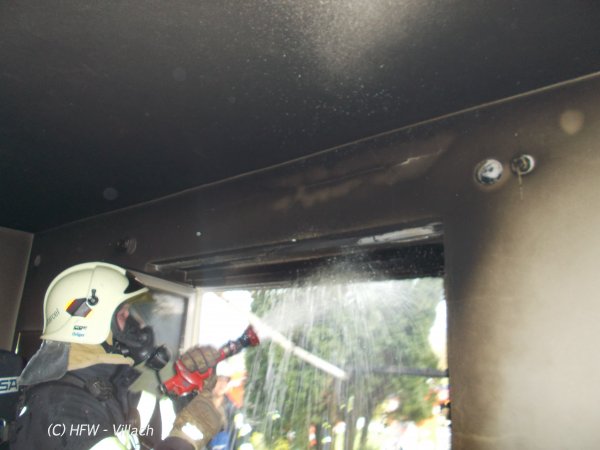 Da sich das Feuer schon Richtung des Dachstuhles ausgebreitet hatte mussten mehrere Holzverkleidungen im Dach Bereich entfernt werden, dieser wurde  mittels Wärmebildkamera auf Glutnester kontrolliert.