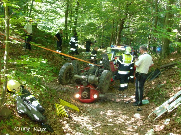 Kurz nach 15.30 wurde die Hauptfeuerwache Villach gemeinsam mit den Feuerwehren Drobollach und St. Niklas zu einem schweren Traktorunfall in die Villacher Ortschaft Bogenfeld gerufen.