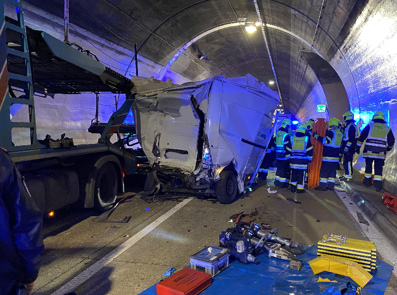 Schwere Unfall im Oswaldibergtunnel auf der Tauenrautobahn