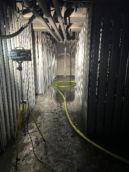 Der Brandrauch wurde anschließend mithilfe von Hochleistungslüftern aus dem Gebäude entfernt.