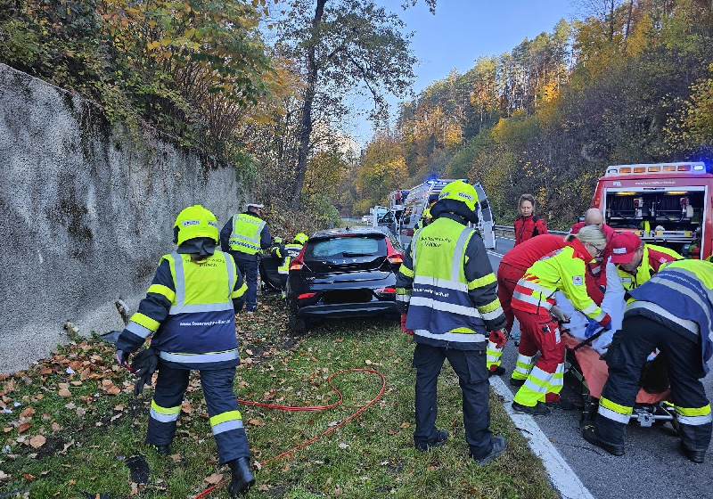 Bei der Ersterkundung stellte sich heraus, dass sich noch eine Person im Fahrzeug befand. "Glücklicherweise war der Lenker nicht eingeklemmt, konnte das Fahrzeug jedoch nicht selbstständig verlassen.