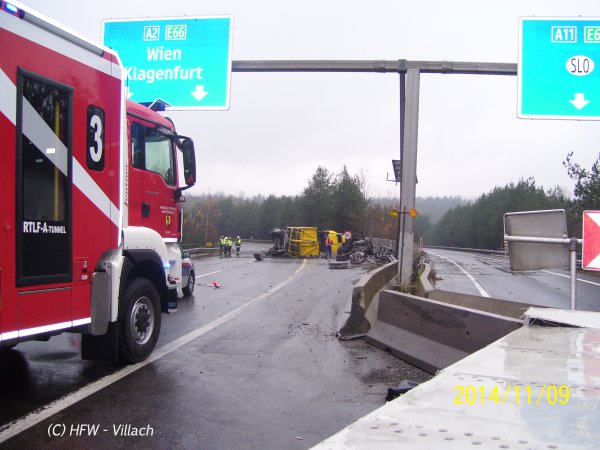 Kurz nach halb 11 Vormittags, wurde die Hauptfeuerwache Villach , gemeinsam mit der Freiwilligen Feuerwehr Vassach zu einem schweren LKW Unfall auf den den Autobahnknoten Villach alarmiert.